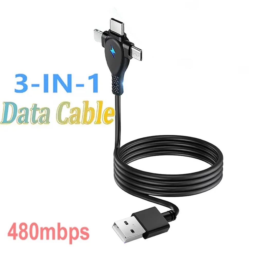 3 in 1 USB Type C Fast Charging Cord Micro Usb Charging Cable USB-C Data Cable For iPhone 15 14 13 iPad Samsung Android and More