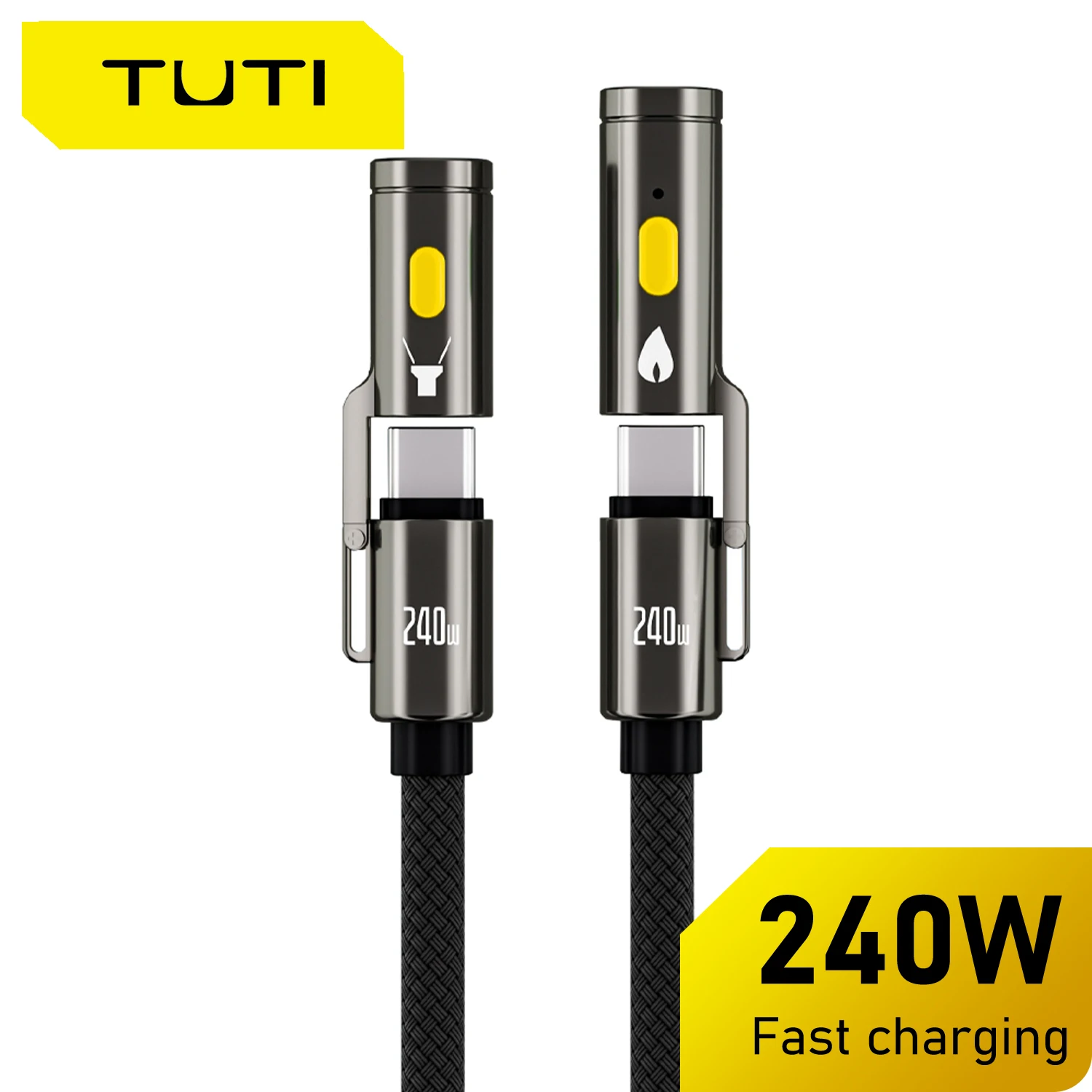 TUTI 240W USB-C Cable with LED Flashlight and Igniter Heavy Duty Nylon Braided Fast Charging Cable for MacBook iPhone Android