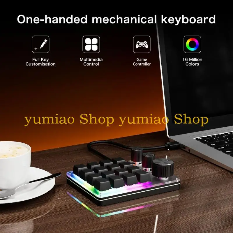 587B USB C Keypad 16-Key 3Knobs Single Handed Mechanical Keyboard Programmable
