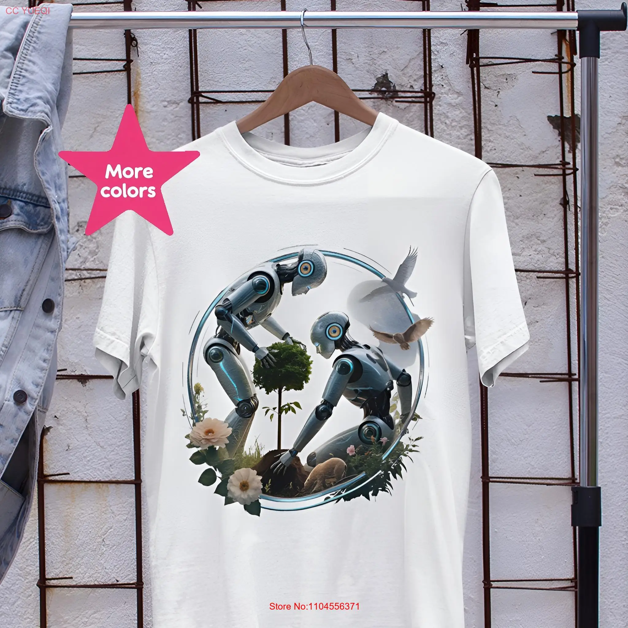 Nature Inspired Robot T Shirt for Green Thumb and Tech Lover AI Garden World of Technology Earth Day Android Clothing