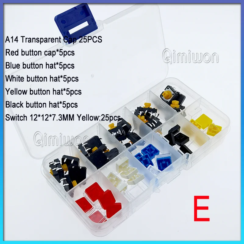 Tactile Push Button Momentary 12*12*7.3MM Micro button with knob Yellow Red Kit 12x12x7.3 Sample box packaging