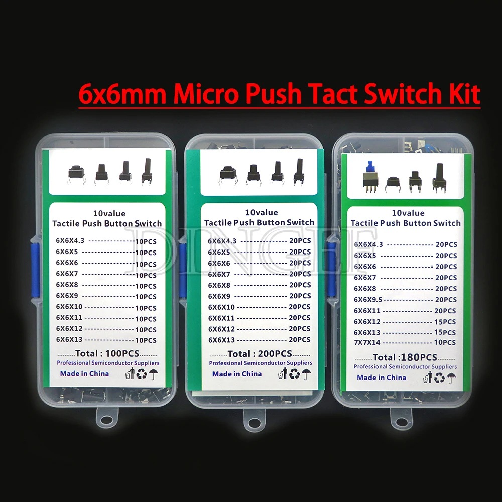 100/180/200PCS 6x6mm Micro Push Tact Switch Kit 6x6 Mini Tactile Toggle Touch Button PCB Momentary 4pin Pushbutton ibuw