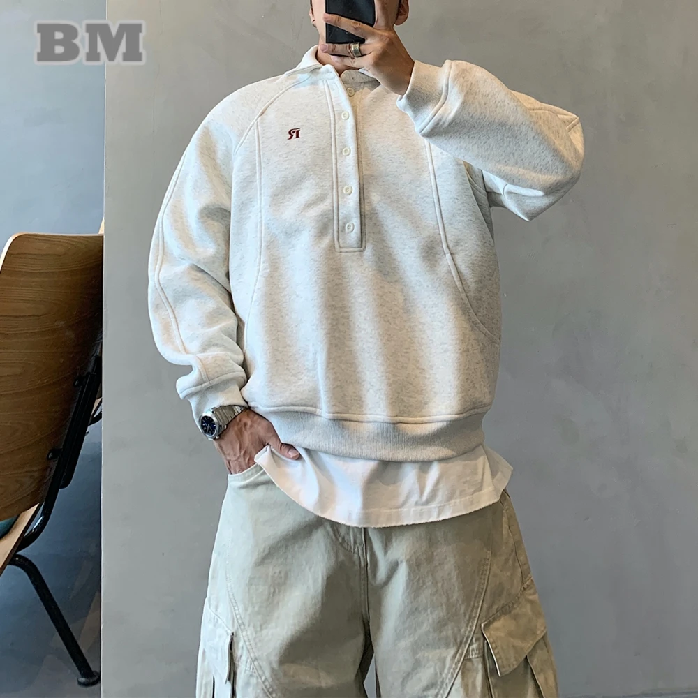 Mens Korean Style Embroidered Collar Sweatshirt Long Sleeve Retro Casual Streetwear Pullover Spring Autumn Fashion Trendy Top