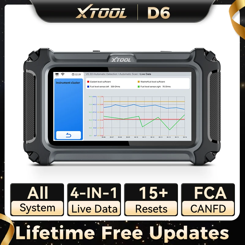 XTOOL D6 Car Automotive Diagnostic Auto VIN OBD2 All System Scanner with 15 Reset Built-in CANFD FCA Lifetime Free Update