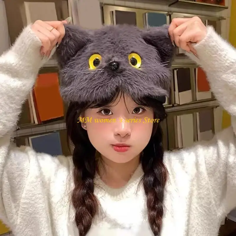 Q39C Soft Furry Plush Cats Ear Knit Hat Comfortable Winter Accessory Fashion Hat For Women Girls Holiday Gift