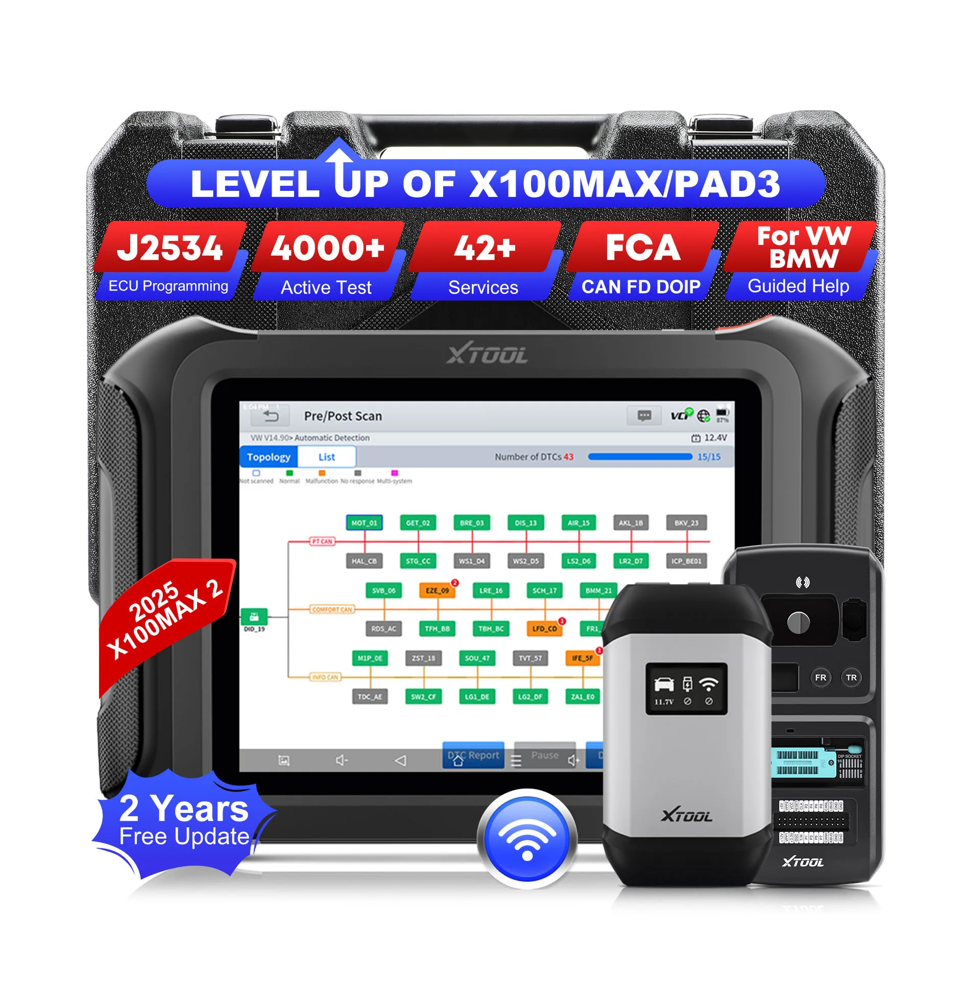 XTOOL X100 MAX 2 All Keys Lost Car Key Programmer Diagnosis Machine Japanese Car Immobilizer Programming Tool with J2534 FCA