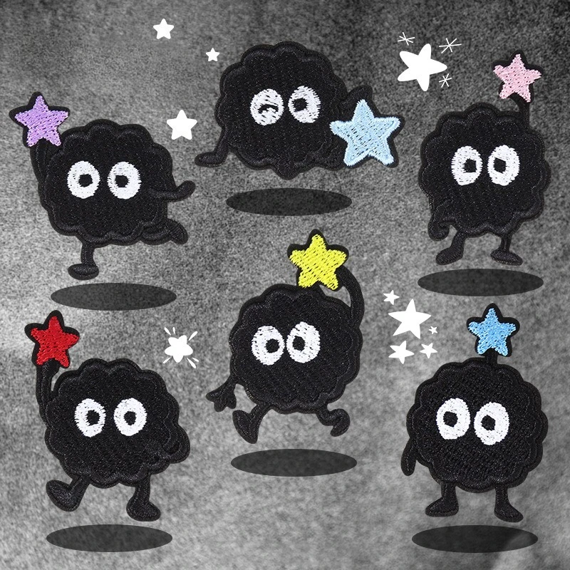 Self-adhesive Stick on Black Cartoon Cute Pixie Embroidery Patches for Clothing Decor Fabric Stickers Down Jacket Clothes Patch