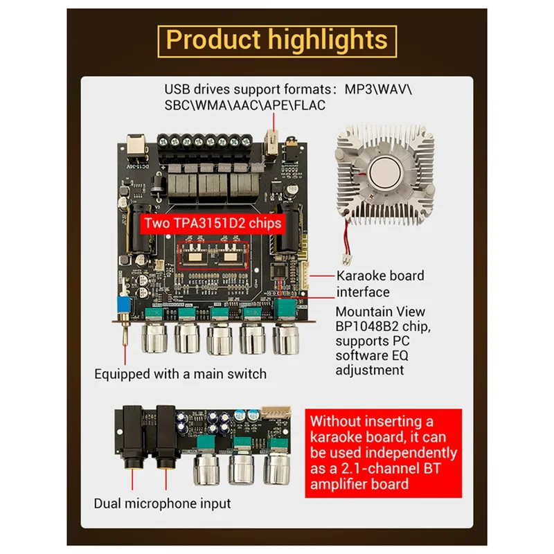 ZK-DAM L1 2.1 Channel BT5.0 Amplifier Board TPA3251D2 220Wx2&350W High Power Subwoofer Amplifier Boards Subwoofer-A09I