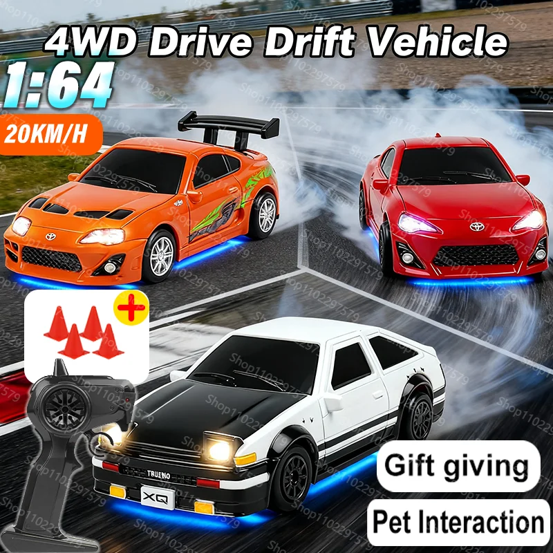 2.4G RC Drift Car 1/64 4WD Drift Car Four-wheel Remote-controlled Racing Car Full Proportion Desk Competition Toy Boy Ideal Gift
