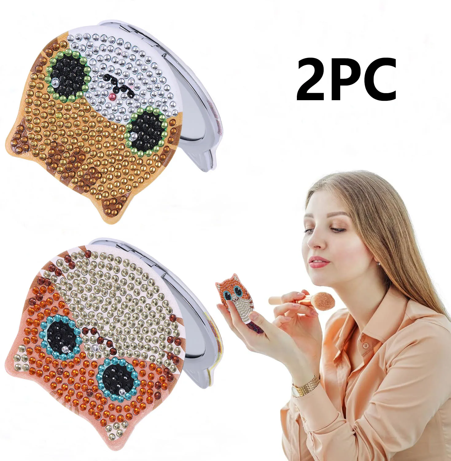 2-piece DIY special pattern diamond painting compact mirror PU leather diamond art mirror set, suitable for travel