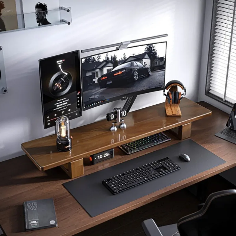 Black Solid Wood Monitor Base Office Height Increase Computer Desk Partition Storage Organize Shelf Multifunctional Laptop Stand
