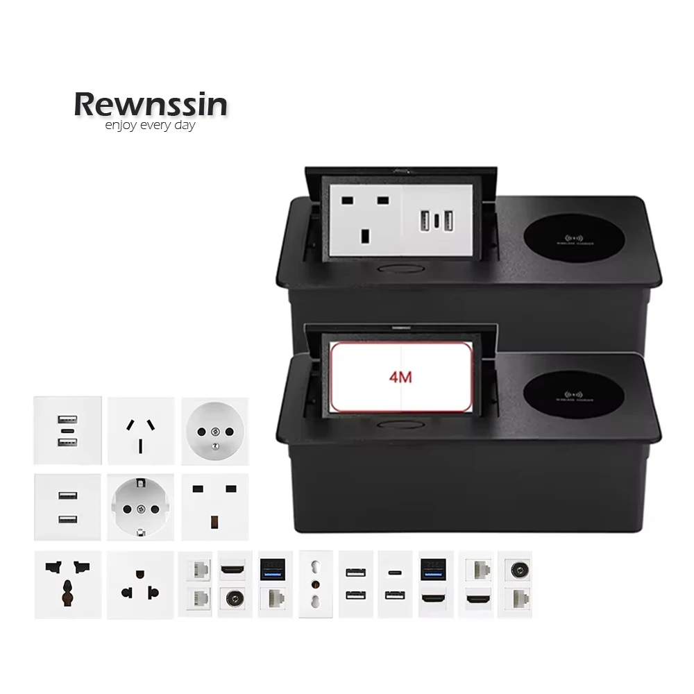 Conference Pop-up Hidden Table Socket DIY Free Combination UK FR EU Desktop Socket With Wireless Charger USB Type-C Port RJ45