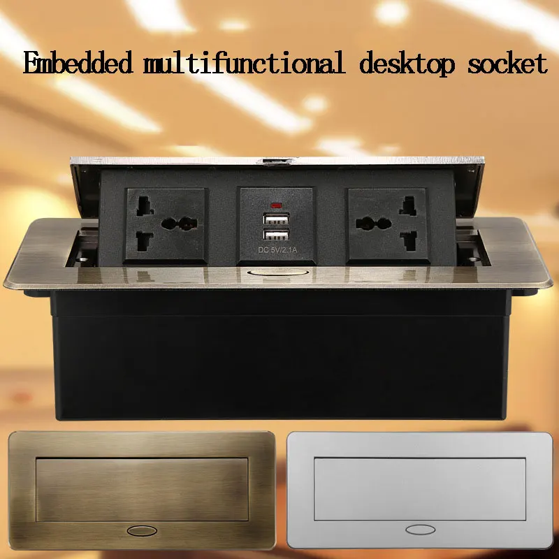 Universal Desktop Socket Pop-up Conference Table Multifunctional Three-hole Desktop 3-pin Power Socket With USB Charging Socket