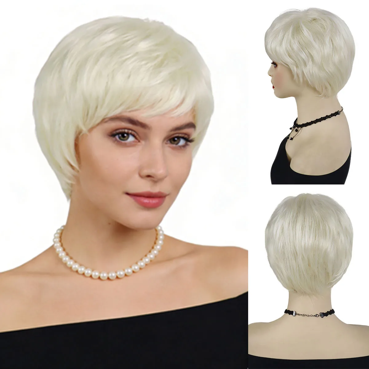Synthetic Blonde Pixie Cut Wigs for Women Short Hair Natural Wig with Bangs Platinum Blonde Wig Cosplay Straight Costume Female