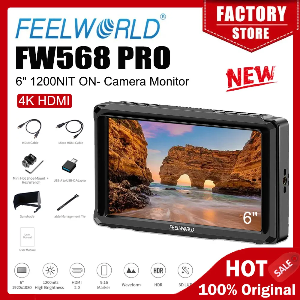 FEELWORLD Camera DSLR Monitor FW568 PRO 6-inch 1200nit High Bright4K HDMI 60Hz