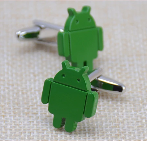 iGame New Arrival Men's Novelty Cufflinks Android Robot Design Green Painting Brass Cuff Links Wholesale & Retail