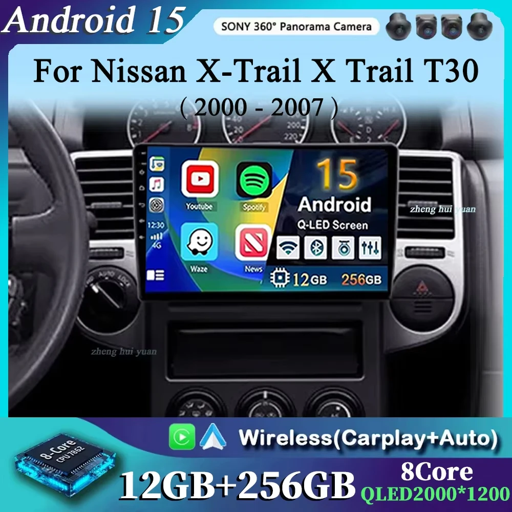 Android 15 For Nissan X-Trail X Trail X - Trail 1 T30 2000 - 2007 2K QLED CarPlay Auto Car Radio Multimedia Video Player GPS