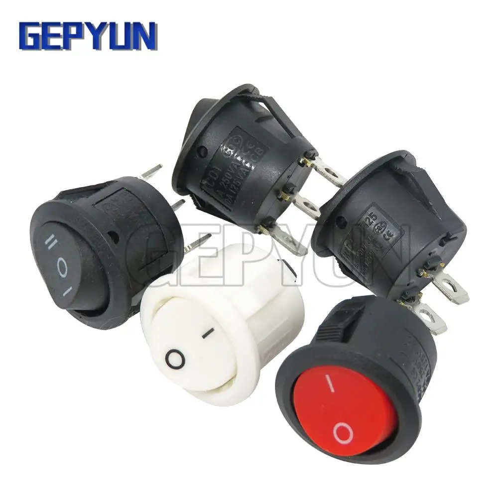 5Pcs Round Switch 2Pin 3pin Diameter Switches Black Mini Round Black White Red ON-OFF KCD1-105 Rocker Switch 20mm