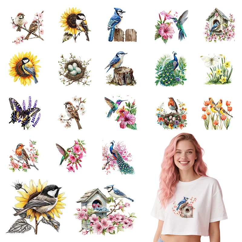 20CM bird butterfly DTF heat transfer sticker DIY T-shirt jacket jeans canvas bag vinyl patch washable patch