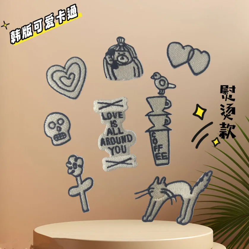 10 Pcs Heart Cat Skull Birds Embroidered Patches Clothing Hat Bag Shoe Repair Material Phone Gift Box Decor DIY Accessory