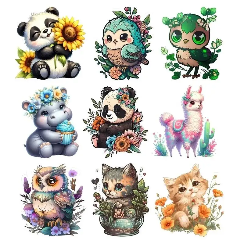 Hippopotamus, Panda, Bird Iron On Heat Transfer Sticker For Clothes DTF Pinted Vinyl Thermal Appliques Washable T-Shirt Decal