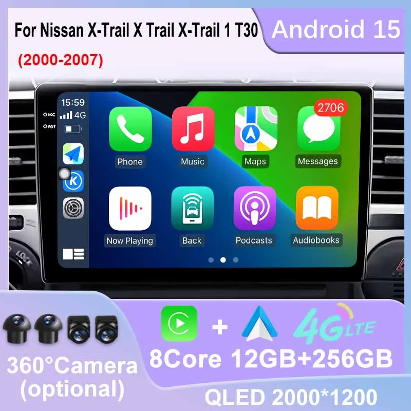 Android 15 Car Player Stereo For Nissan X-Trail X Trail 1 T30 2000-2004 Multimedia GPS Auto Radio DVD Navigation Carplay QLED