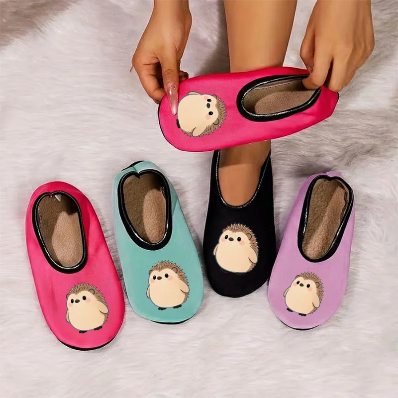 Four season wearable couple cartoon bird print with thin velvet lining, breathable, high elasticity, anti slip floor slippers