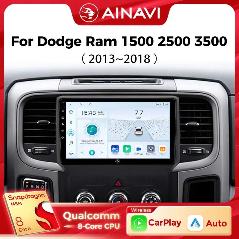 Ainavi Car Radio Multimedia Player For Dodge Ram 1500 2500 3500 2013-2018 Wireless Carplay Android Auto Car Stereo 48EQ GPS DSP