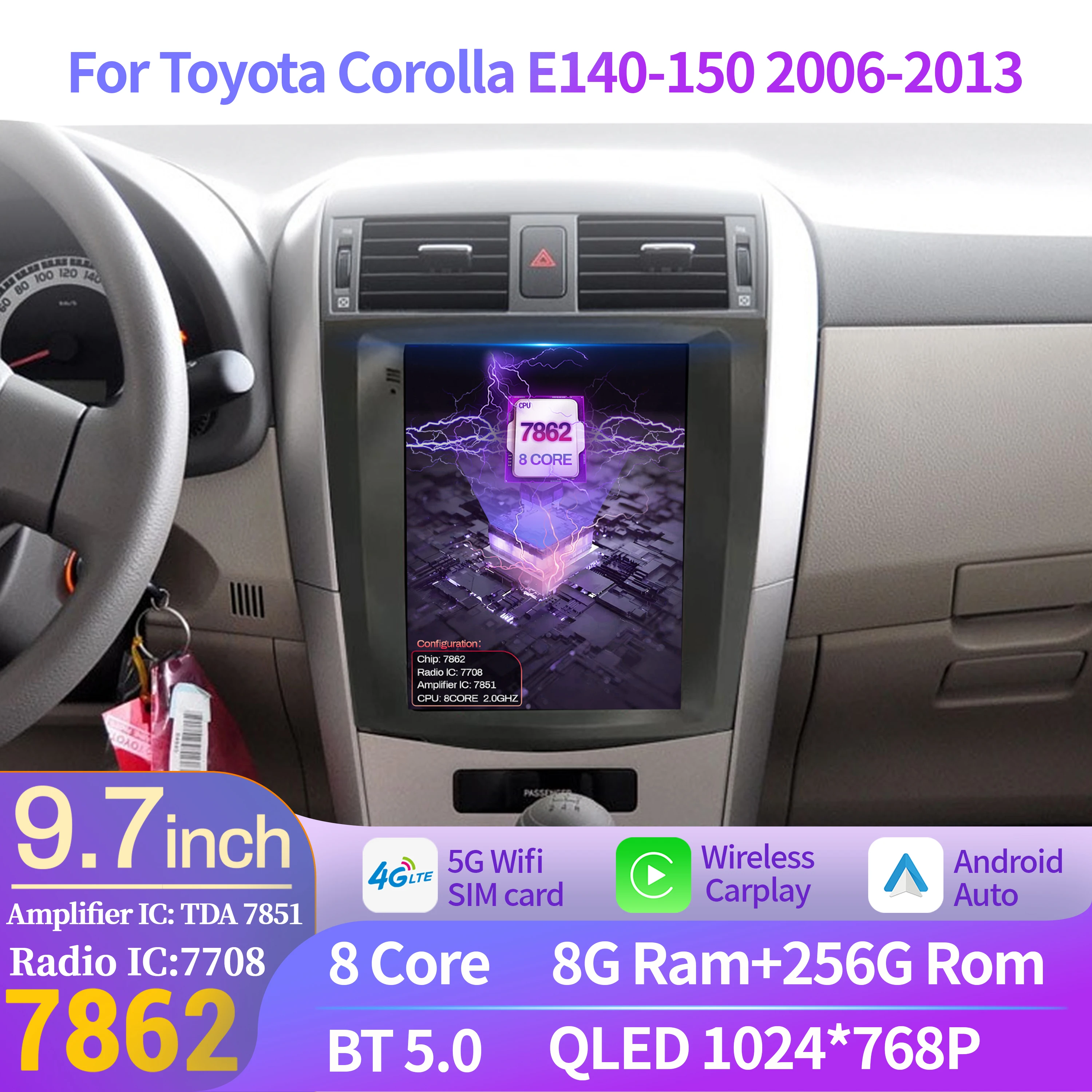 9.7inch Car Radio Multimedia For Toyota Corolla E140-150 2006-2013 Android 14 Wireless BT Carplay QLED Screen