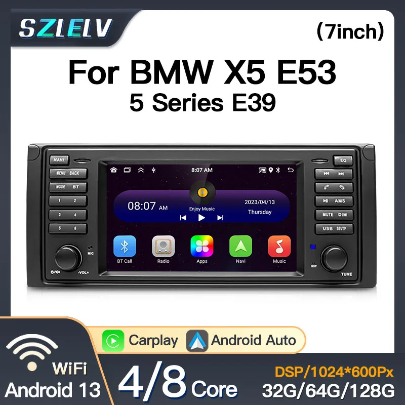 For BMW 5 Series E39 X5 E53 M5 1996-2004 Car Radio Multimedia Player 7 inch Android 13 Carplay GPS Navigation Stereo Audio BT