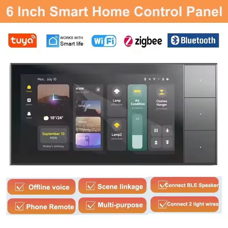 6 Inch Tuya Central Control Panel Built-in Zigbee Hub Smart Home 1440*720 HD IPS Android Touch Scene Panel with RS485&Wifi Relay