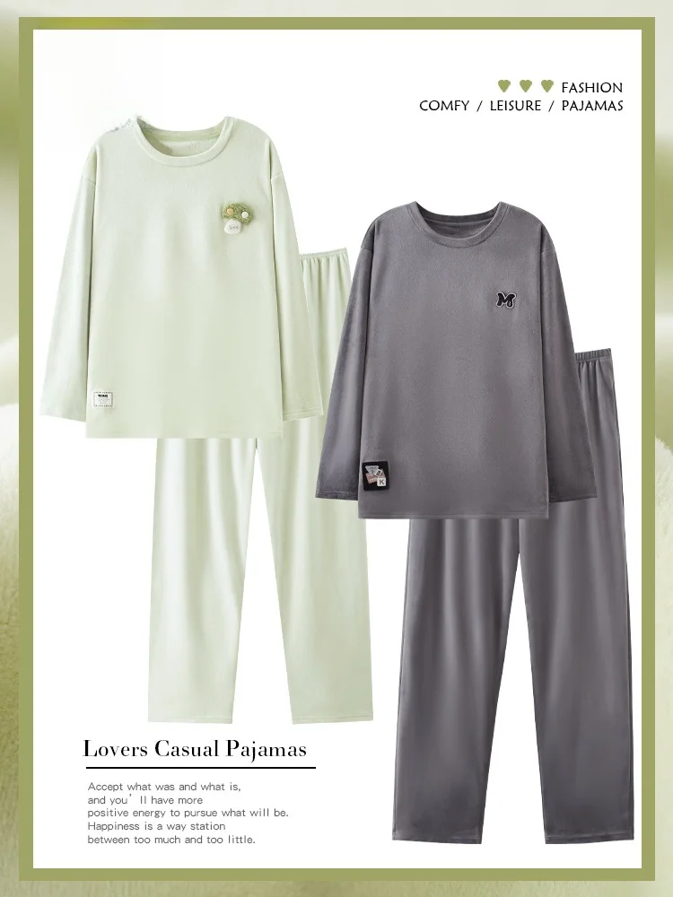 Couple's Spwear Island Velvet Thin Velvet Autumn Winter Home Clothes Long Sve round Ne Pullover Home Leisure Suit