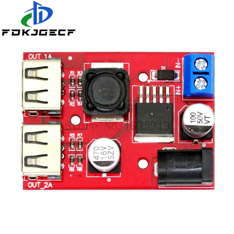 LM2596 LM2596S Dual USB DC-DC 9V 12V 24V 36V to 5V 3A Step Down Buck Converter Board Car Charger Solar Power Supply Module