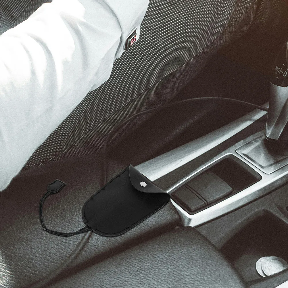 2Pcs Car Key Pouch Geometric Soft Fake Snap Button Compact Portable Key Holder Protection Cover Keychain Holder Wallet