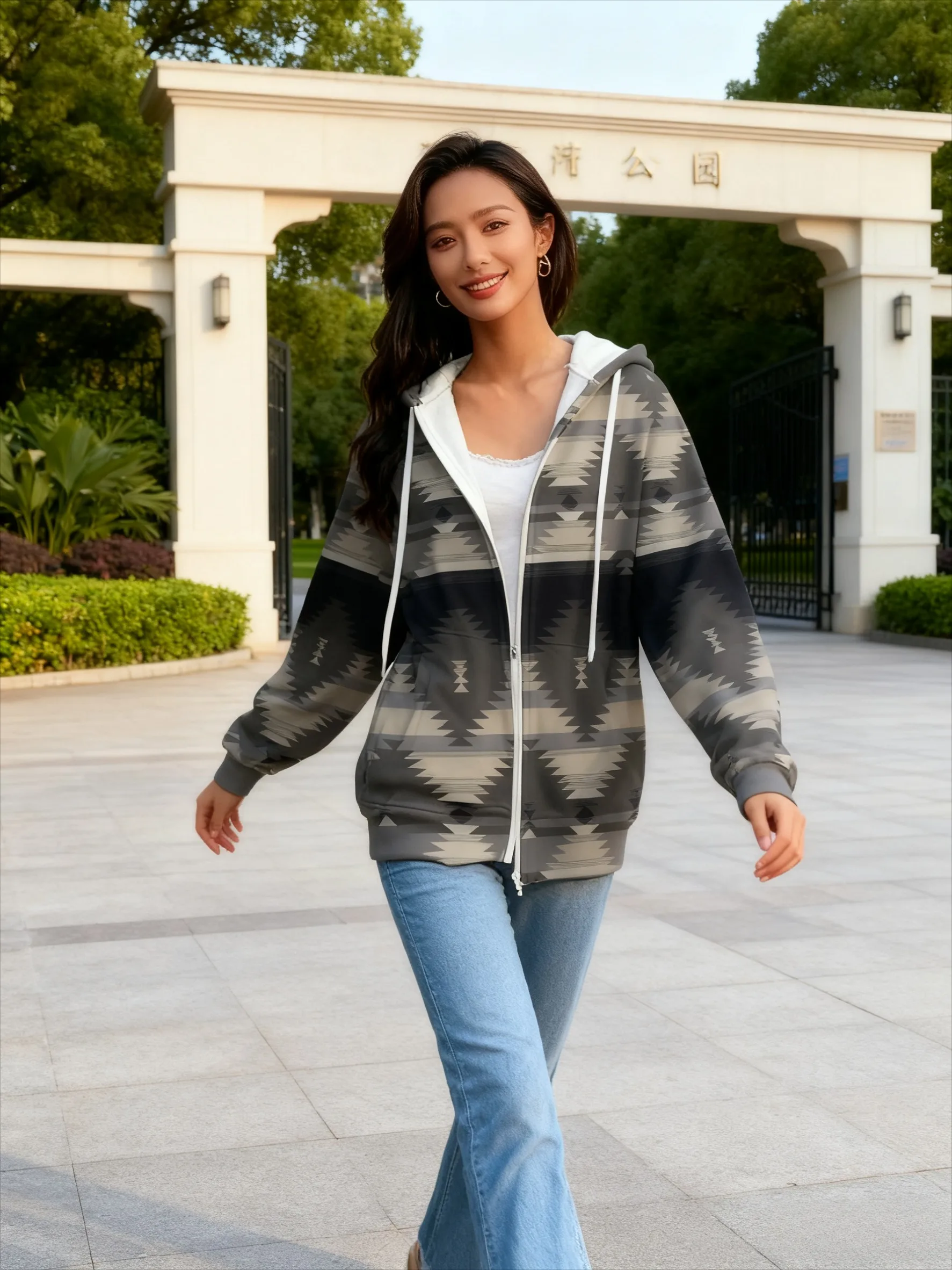 Women Fair Isle Sweater Zipper Front Collared Zip-up Sweater Knit Jacket Cozy Knitwear Teen-girl Fall Winter Vintage Outfit