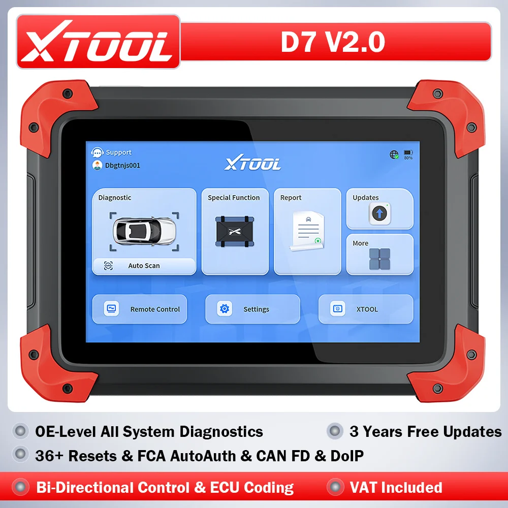 XTOOL D7 Diagnostic Tool Bidirectional OBD2 Scanner with ECU Coding Full System Car Scanner with 36+ Resets Injector Coding Throttle Relearn FCA CANFD DoIP 3 Years Free Update