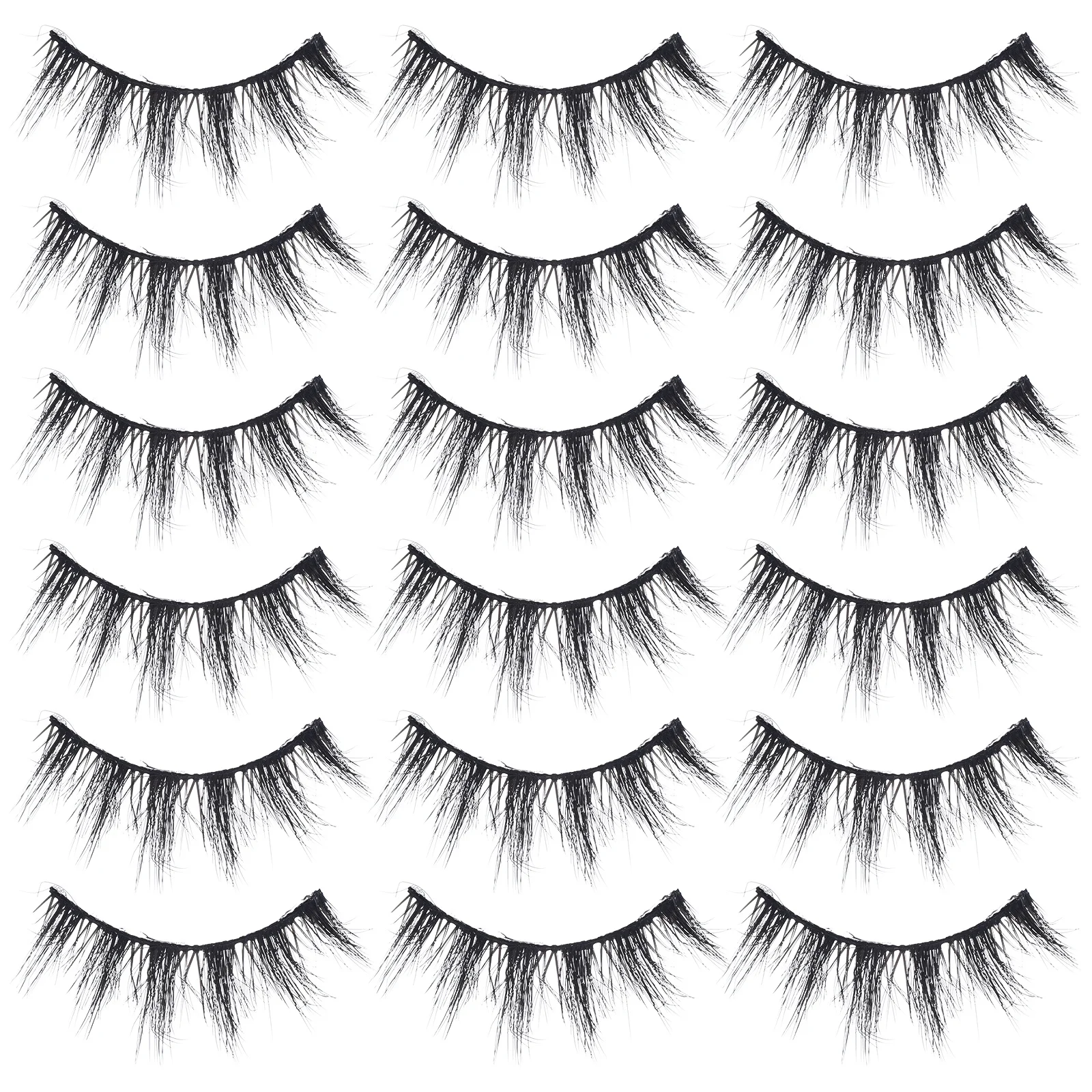 20Pairs Premium Synthetic False Eyelashes Volume Curling Reusable Lash Strips for Makeup Party Daily Wear Bulk Eyelashes