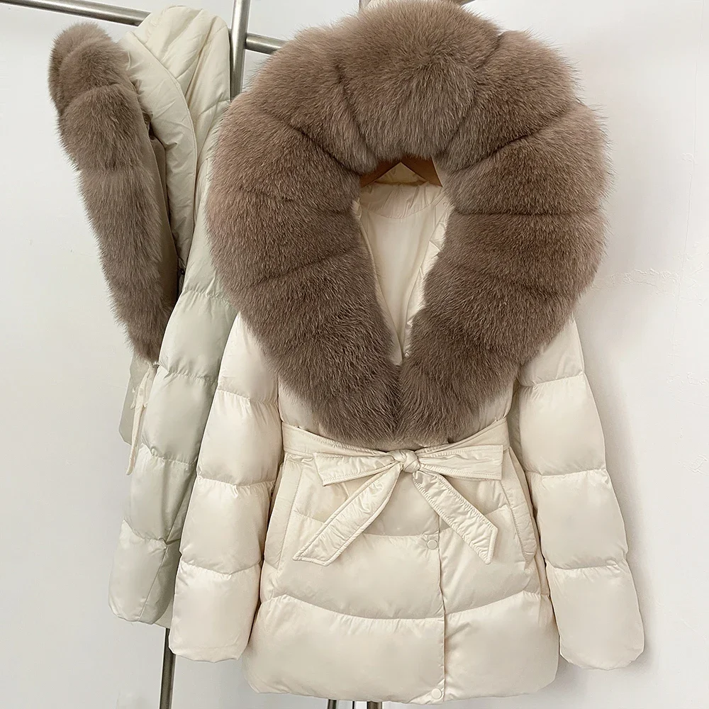 Real Natural Fox Fur Collar 90% White Duck Down Jacket Warm Women High End Winter Thickened Down Coat Loose Short Puffer Coat