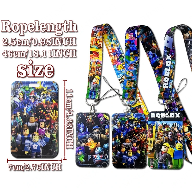 Roblox Cartoon Card Covers Lanyard Creative Rope Holder for Kawaii Student Campus Hanging Bus Meal Kids Gift Halloween Festival