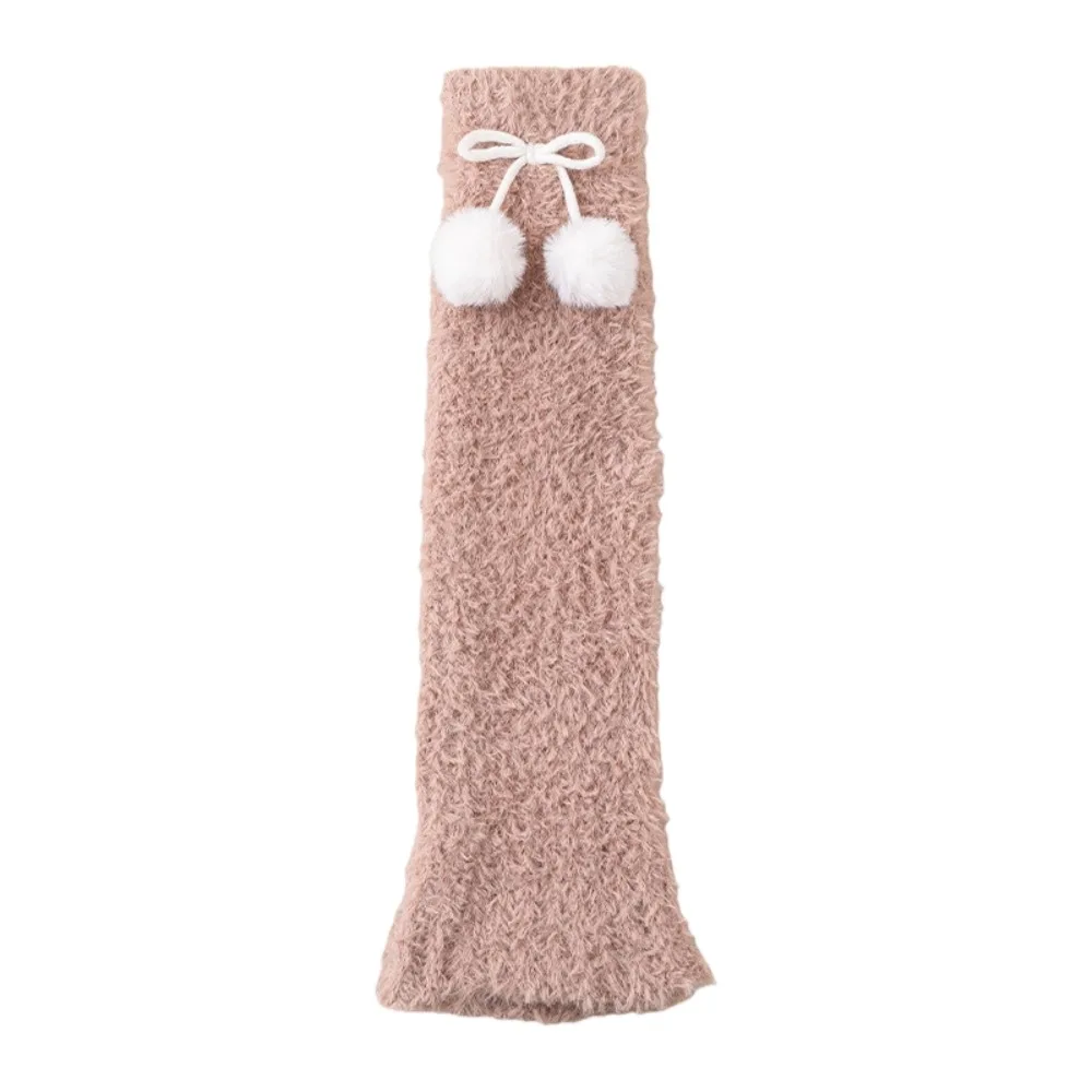 Japanese Style Furry Leg Warmers 42cm Cherry Plush Ball Pendant Long Tube Sock Sweet Kawaii Knee High Girls Socks Women
