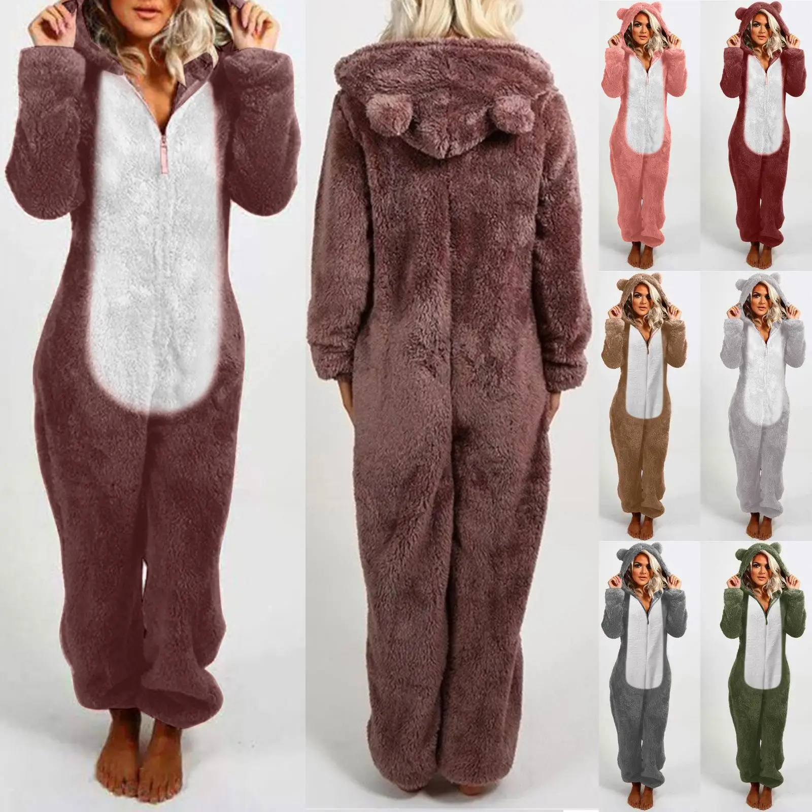 Women's Thi Furry Hooded Ear Jumpsuit High Waist Loose Fit Velvet Fabric Cotton 00% Autumn Season Teen Girl Sle