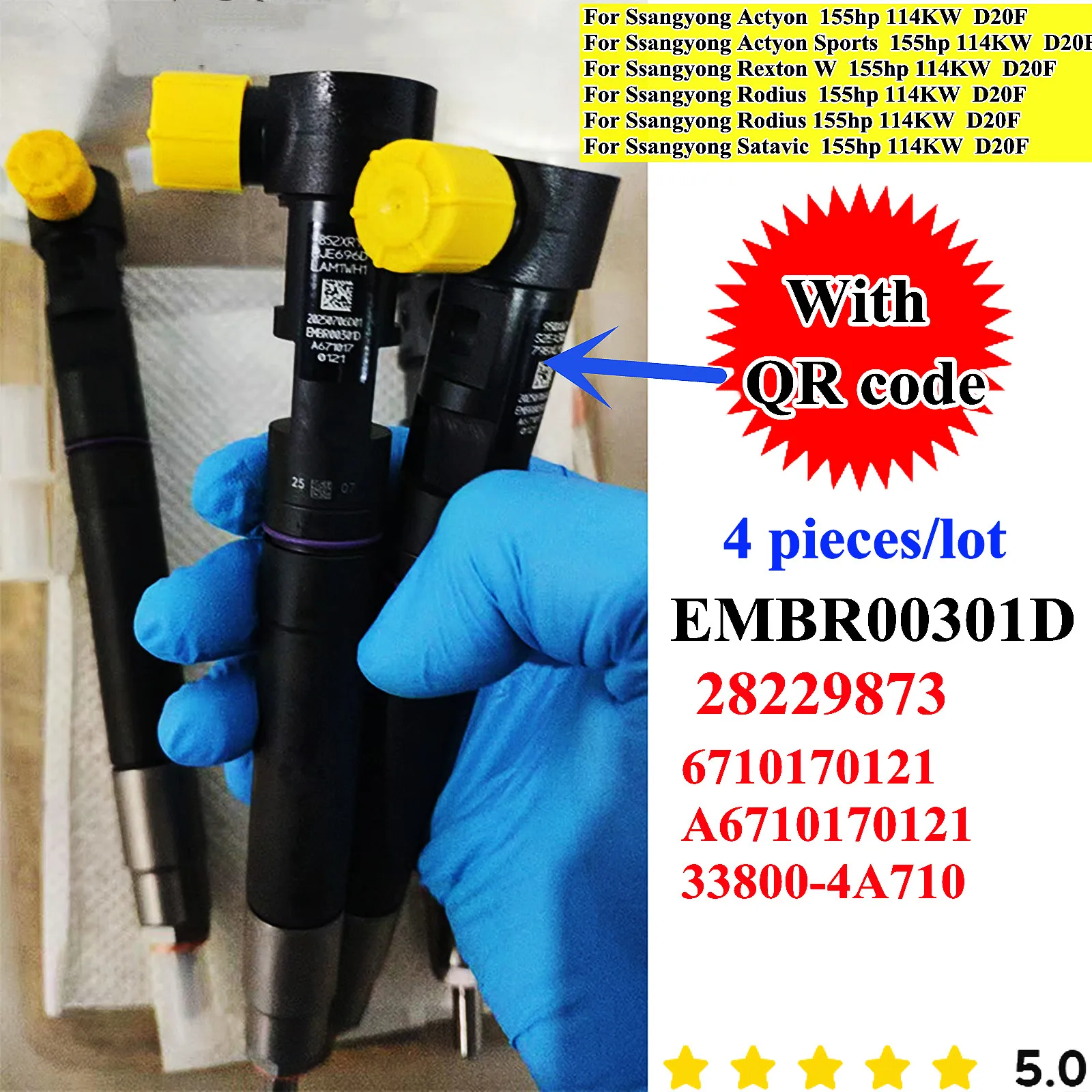 4PCS With QR code 33800-4A710 Original Genuine Fuel Injector EMBR00301D 28229873 6710170121 A6710170121 For Ssangyong Actyon
