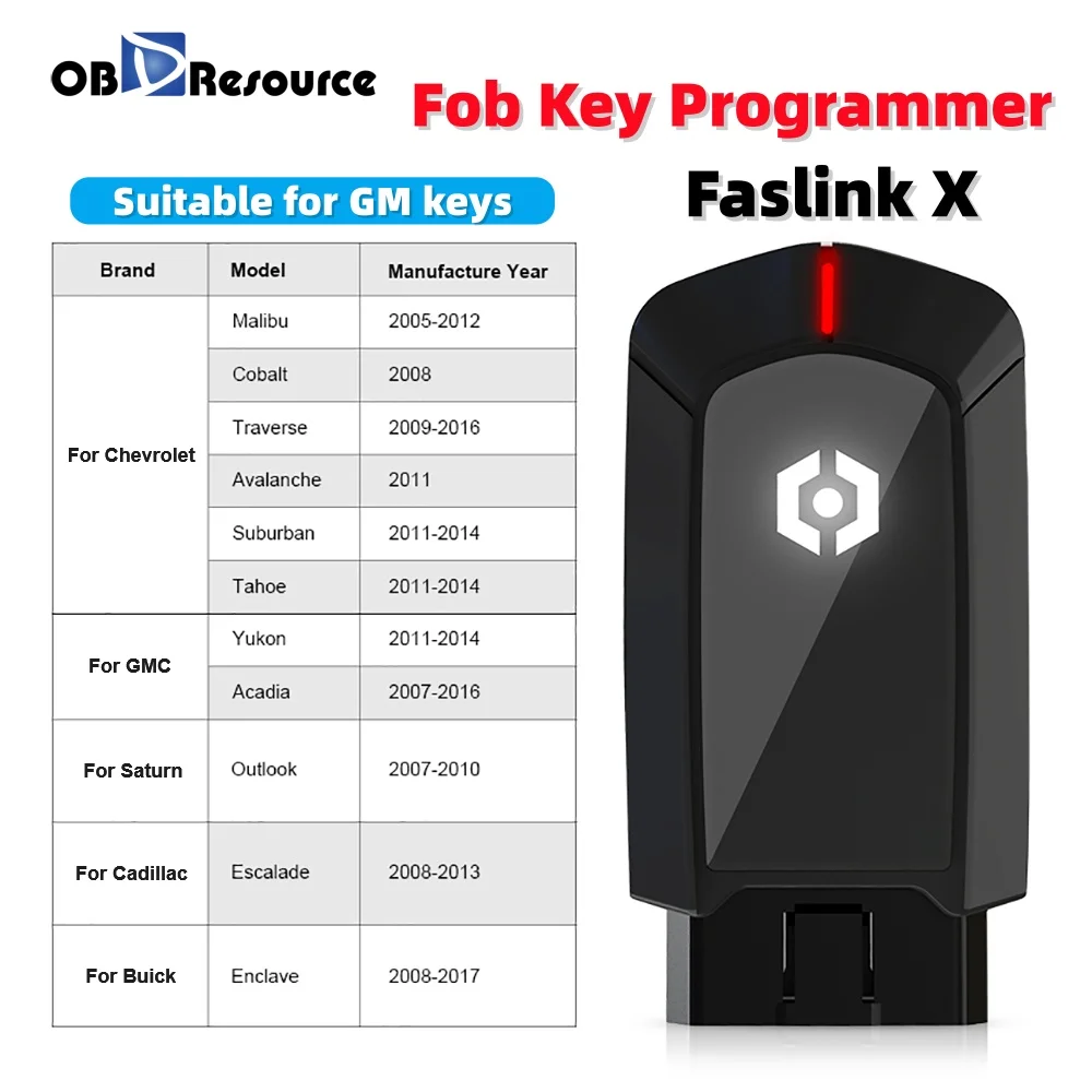 OBDResource Key Fob Programming Tool for GM Faslink X Car FOB Remote Transponder Keys for Chevrolet GMC Saturn Cadillac Buick