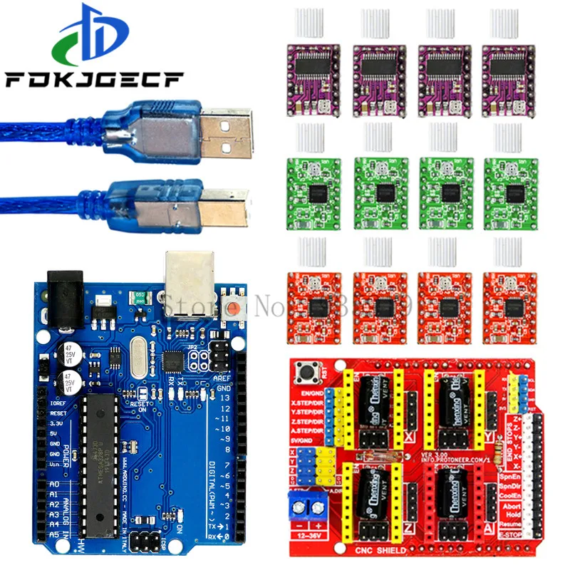CNC Shield V3 engraving machine 3D Printe+4pcs A4988 / DRV8825 driver expansion board for Arduino+For UNO R3 with 30cm USB cable