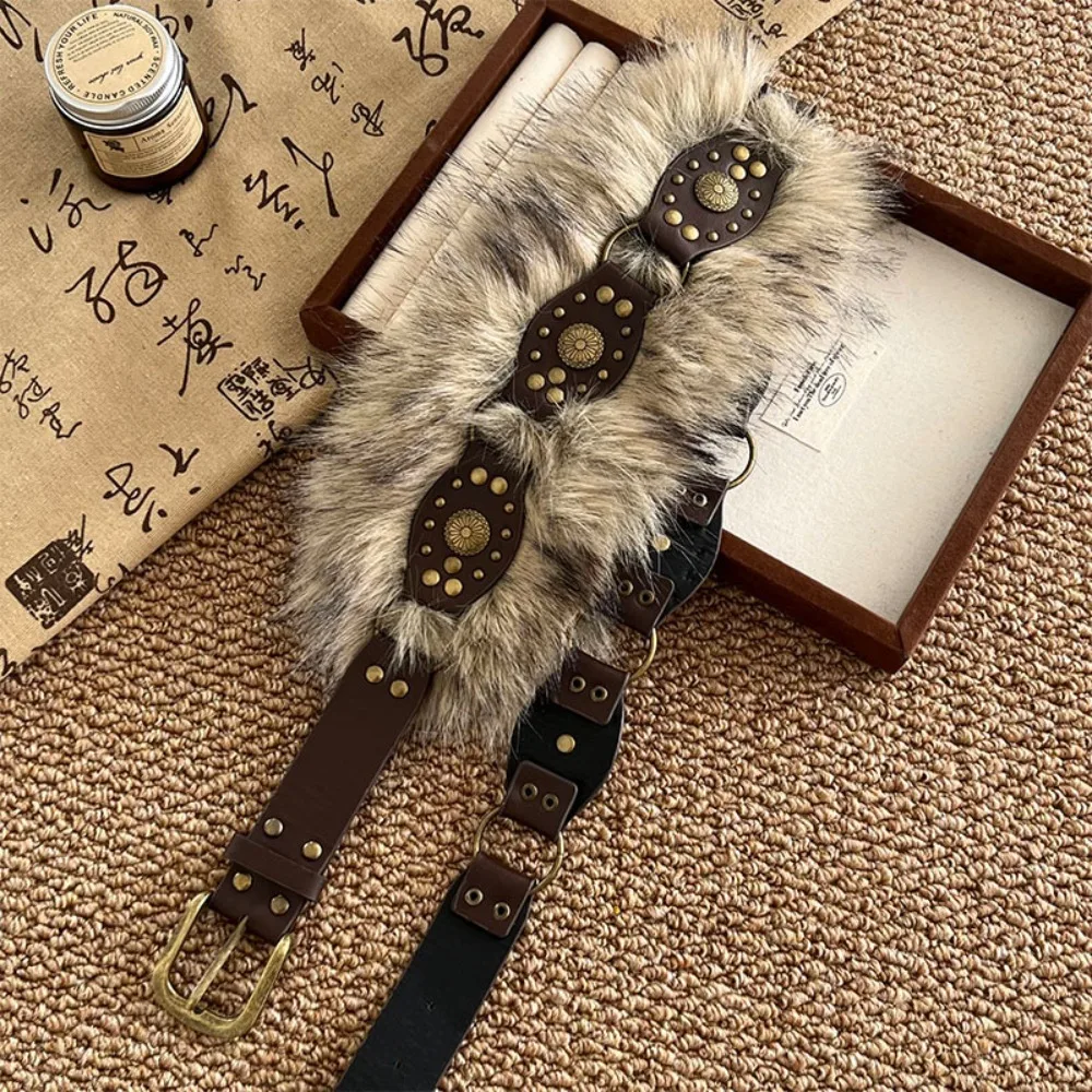 Vintage Spicy Girl Style Leather Fur Belt Punk Jeans Decor Furry Waistband Versatile Retro Y2K Plush Waist Belt Daily