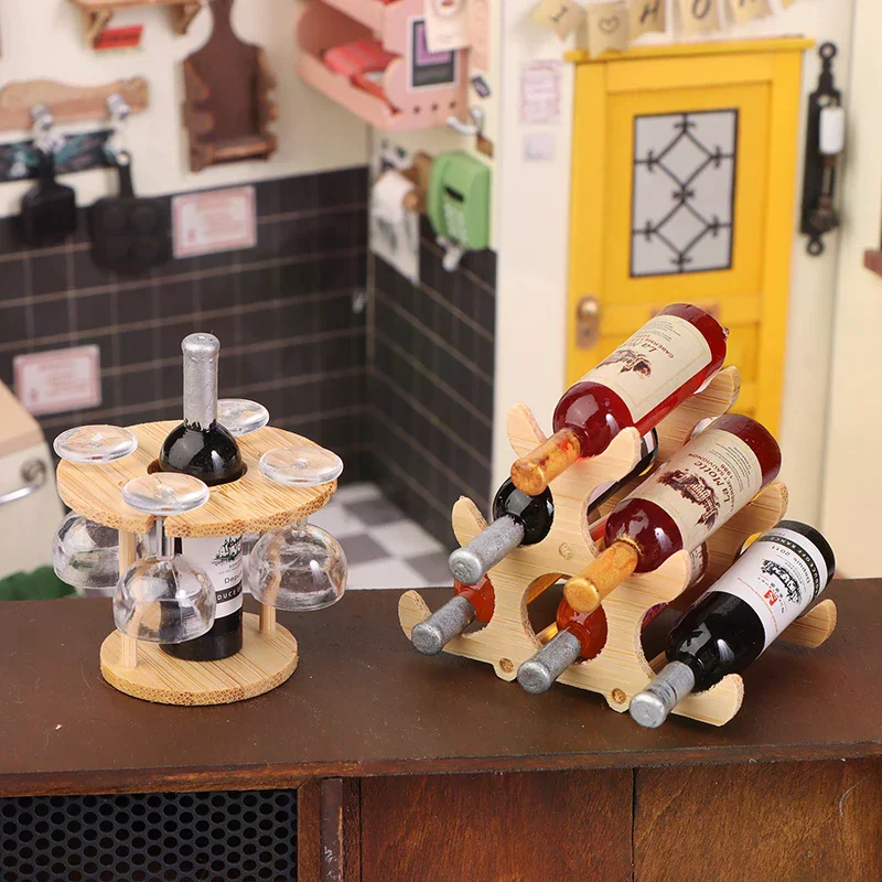 Home Furniture Decor Toy Dollhouse Miniature Mini Wine Glass Rack Goblet Set Model Doll House Accessories