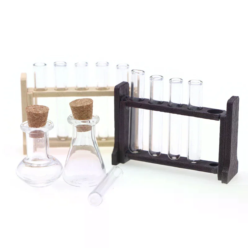 Decor Toy Doll House Accessories 1:12 Dollhouse Miniature Test Tube Measuring Cup with Rack Laboratory Model 1Set