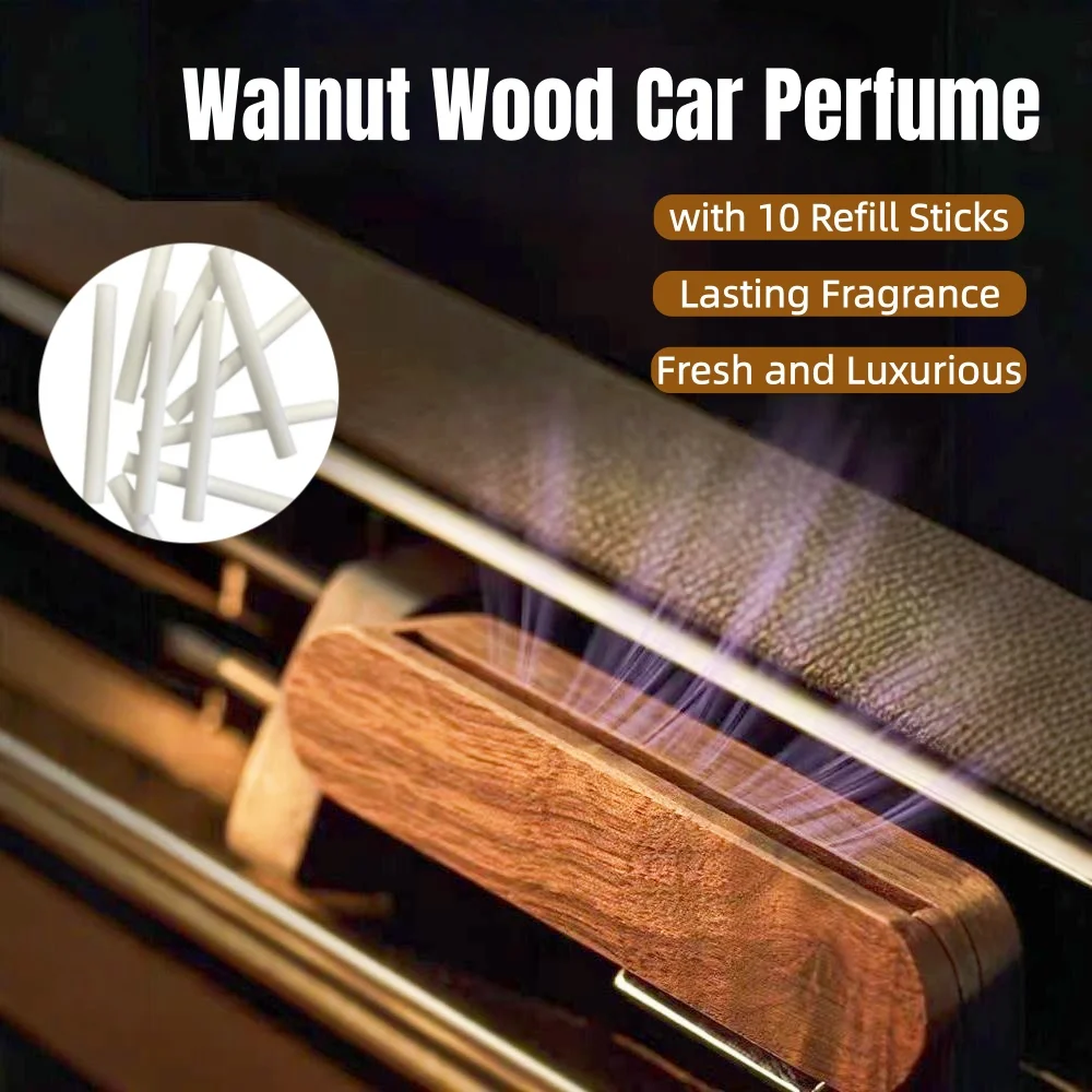 Car Perfume Car Diffuser Wood Vent Clip Air Freshener with 10 Refill Sticks Lasting Aroma for Car Interior Premium Solid Wood