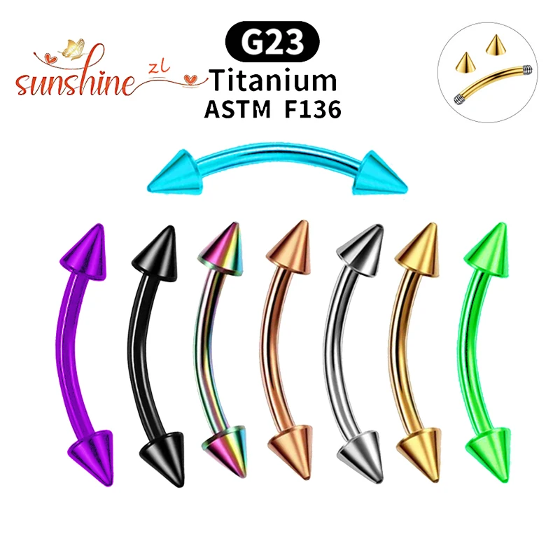 1PC G23 Titanium Spike Curved Barbell Eyebrow Ring External Thread Eyebrow Stud Cone Rook Daith Piercing Gold Color Lip Piercing