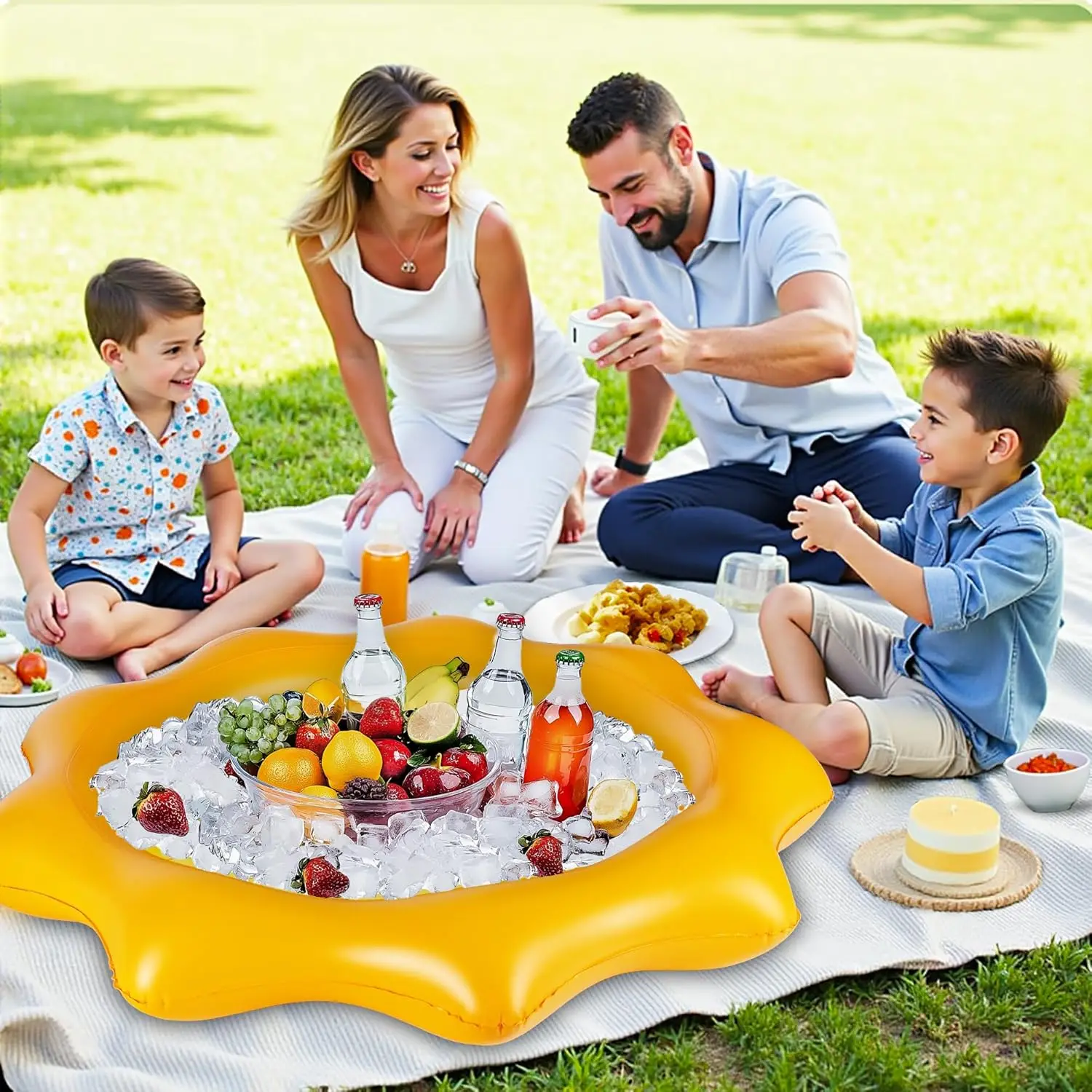 New PVC Inflatable Sunflower Ice Bar Food & Beverage Buffet Salad Tray Summer Outdoor BBQ Picnic Water Floating Pool Table
